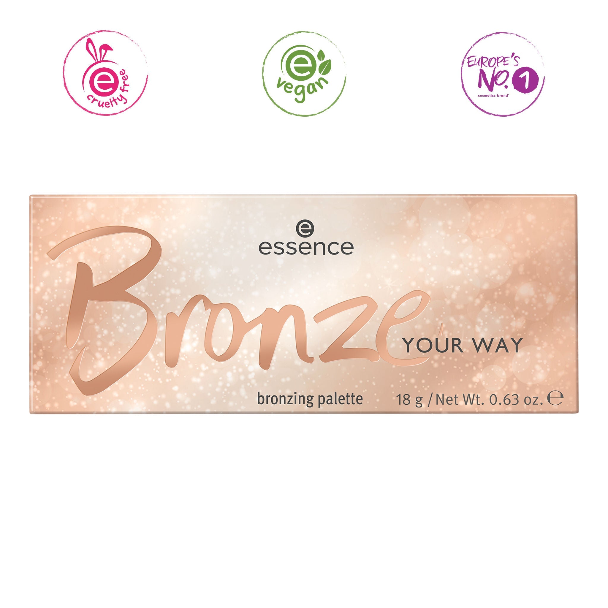 - The Choose your Glow Highlighter Palette now has a sister for an ultimate sun-kissed look. Essence Bronze Your Way Bronzing Palette has colours that define the face and body and give them a warm glow. The bronzer shades can be mixed and matched with the highlighter shades for an individual look, from a sunny beach look to an evening look.
