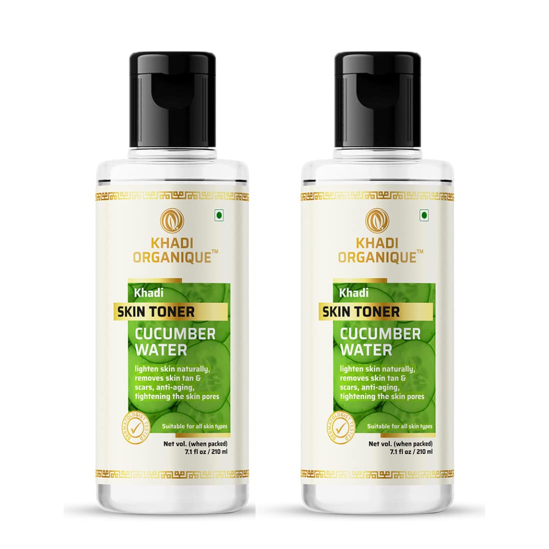 - This Khadi Organique Cucumber Water Skin Toneracts as natural toner & astringent that helps to get rid an oiliness in skin. Cucumber also works as natural bleaching agent that’s useful for skin tan removal and reducing scars. It helps to reduce & rather reverse signs of aging for firming up tightening the skin. Potent as antioxidants for resolving inflammation on skin smoothly for lightening up skin and relieves from clogged pores & excessive oil.