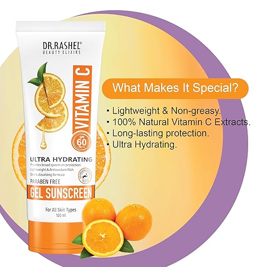 - Free from harmful chemicals like Paraben and Sulphate, it is suitable for every skin type. It gives better coverage and long-lasting protection from the sun. Now enjoy the summer season like never before with Dr. Rashel Vitamin C Sunscreen.