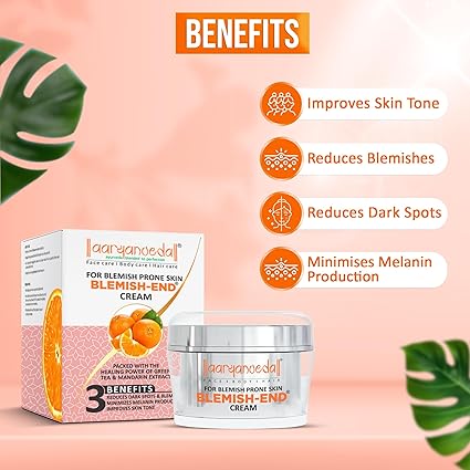 • Blemish-end Cream: Aryanveda Anti Blemish And Pigmentation Face Cream Is For Acne-prone Skin, Blemishes, Pigmentation & Spot Removal.