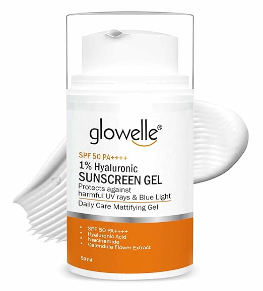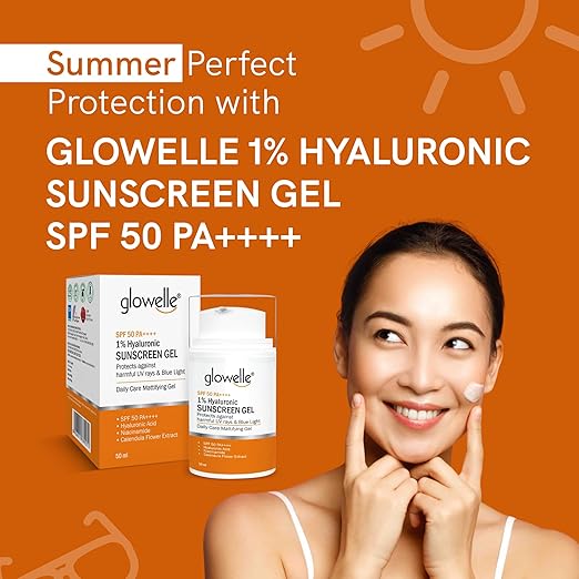 - Non-greasy : Say Goodbye To The Greasy And Oily Finish Of Typical Sunscreens. The Glowelle 1% Hyaluronic Sunscreen Gel Doesn’t Clog Pores. The Presence Of 1% Concentration Of Hyaluronic Acid In This Sunscreen Makes It Quick To Absorb And