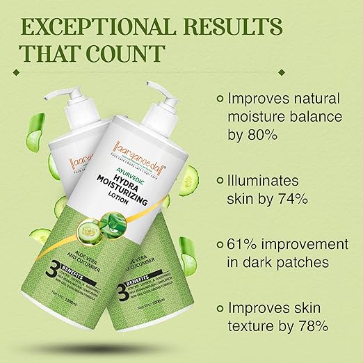 - Complete Hydration: The Aryanveda Aloe Vera And Cucumber Hydra Moisturizing Lotion Provides Complete Moisturization And Hydrates Your Body From The Pores, Giving You A Fresh And Natural Glow In Just A Few Minutes.