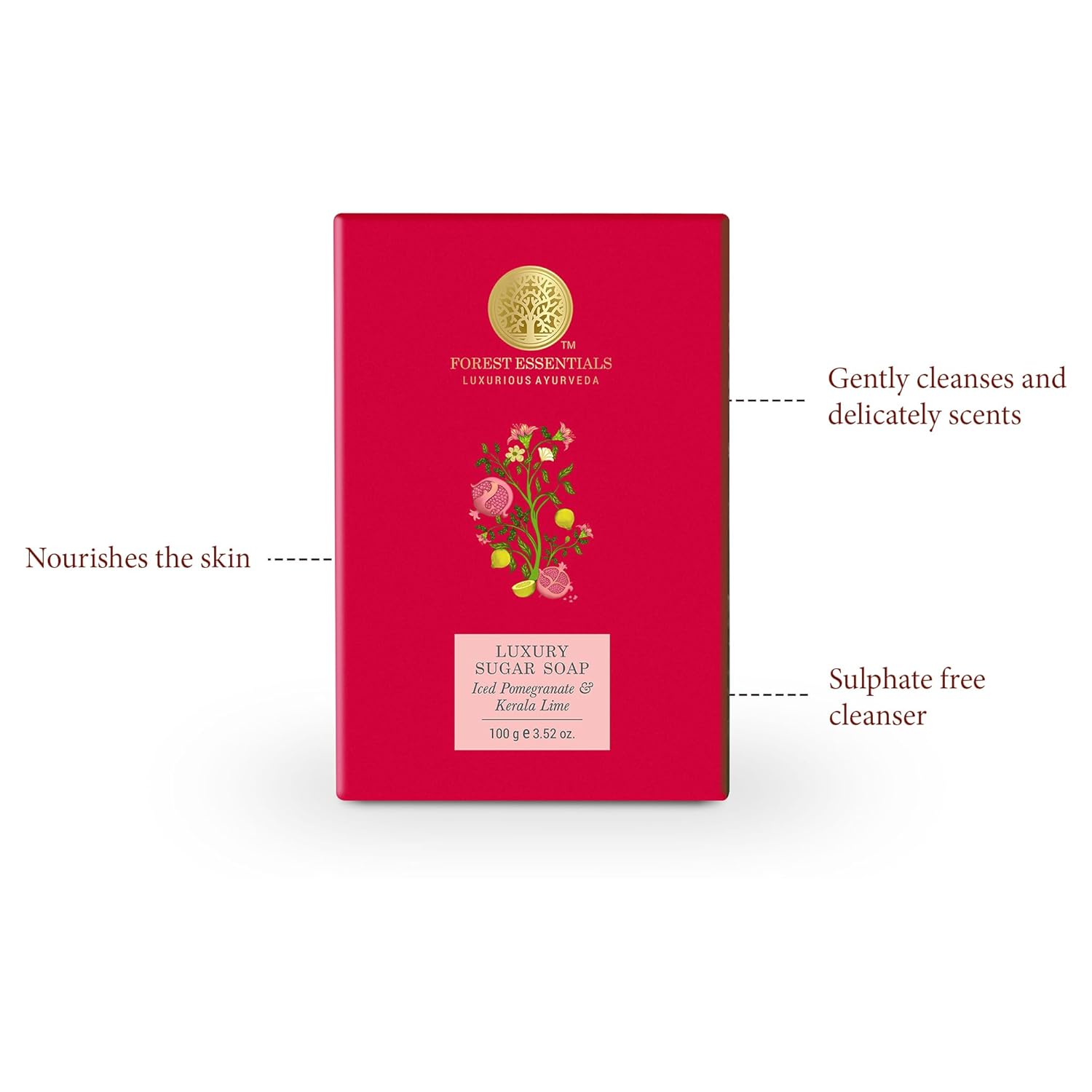 - The Forest Essentials Luxury Sugar Soap Iced Pomegranate & Kerala Lime is made by hand using the old fashioned cold process.