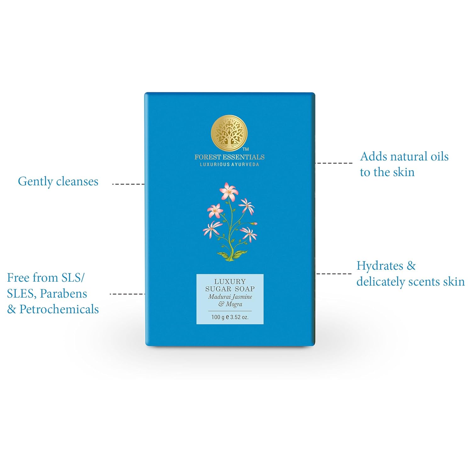 - This Forest Essentials Luxury Sugar Soap Madurai Jasmine & Mogra is a clear soap formulated with organic Cane Sugar, which cleanses the skin without stripping of its natural oils.