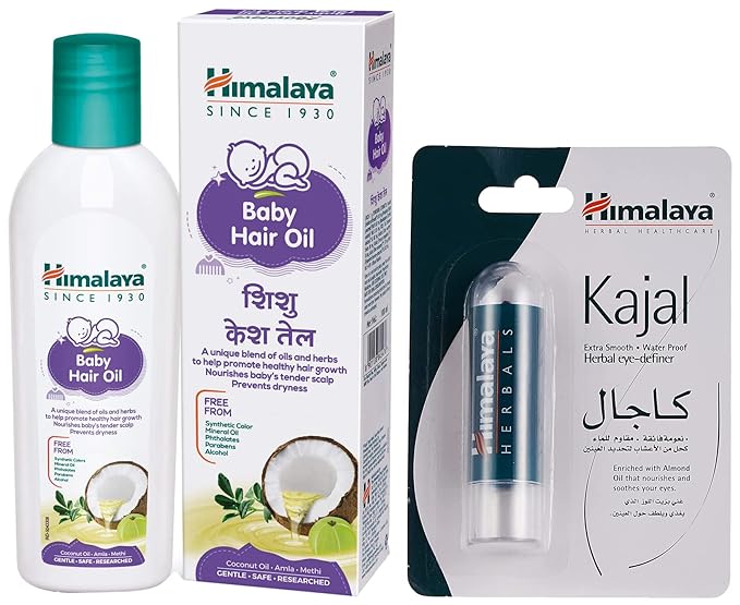 Himalaya Baby Hair Oil 200 ml & Himalaya Herbals Black Kajal (2.7 gms)Combo