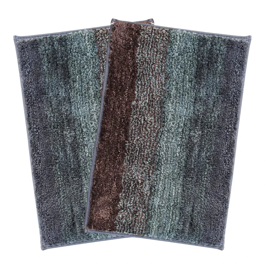 The Home Talk Cotton Stripes Bathmats Water Absorbent Runners Floor Mats Non-Slip Pack of 2 Beige Turquoise