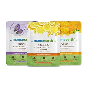 Mamaearth Vitamin C Bamboo Sheet Mask 25 g + Ubtan Bamboo Sheet Mask 25 g + Retinol Bamboo Sheet Mask 25 g