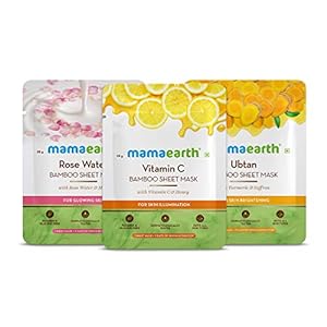 Mamaearth Ubtan Bamboo Sheet Mask 25 g + Rose Water Bamboo Sheet Mask 25 g + Vitamin C Bamboo Sheet Mask 25 g