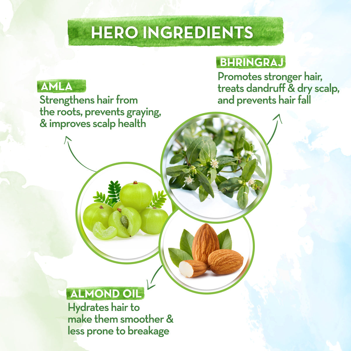 Dry and damaged hair can be the result of constant hair styling, keratin deficiency, and UV damage. Mamaearth BhringAmla Conditioner, crafted with age-old herbs like Bhringraj, helps revive hair to its natural splendor.Whether you want your hair to become smoother or stronger BhringAmla conditioner will help you achieve your hair goals. The natural goodness of Bhringraj, combined with Amla, helps reduce greying, boosts keratin synthesis, and makes hair softer and shinier.Suitable for all hair types, this BhringAmla Conditioner is free of SLS, Toxins, & Parabens. It contains BhringAmla oil made with the traditional Kshirpak Vidhi.