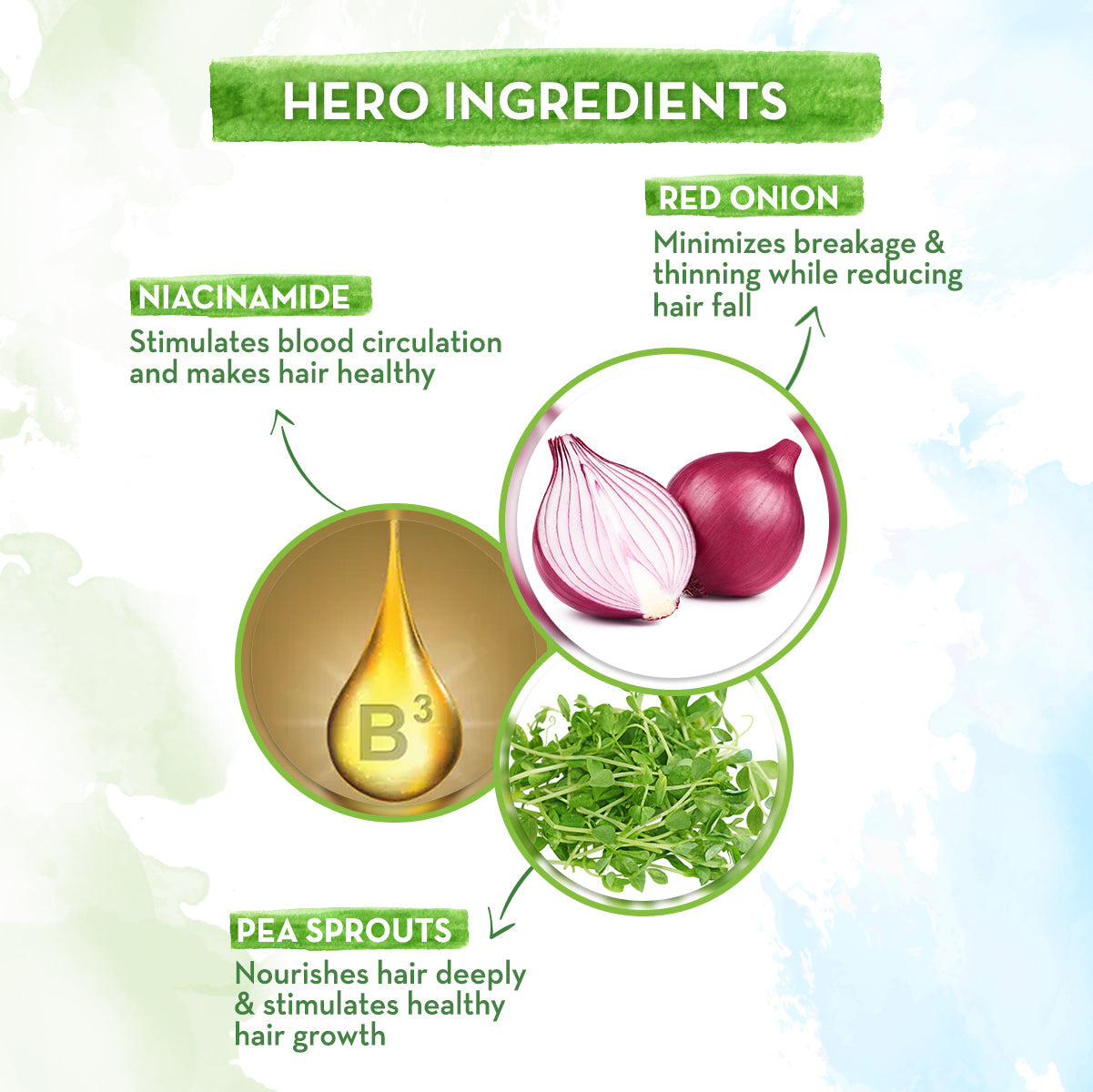 The road to healthy and strong hair begins with taking good care of the scalp. You are in luck! Our Onion Scalp Serum for hair growth will put life and bounce back into your locks and stop premature hair fall. Say goodbye to weak hair with Mamaearth Onion Scalp Serum. Onions are an excellent source of natural sulfur that is known to prevent breakage, split-ends, and thinning. This nourishing and hydrating formulation of Red Onion, Vitamin B, Pea Sprout, and Aloe Vera will give you healthier, shinier and thicker hair. It works by nourishing the scalp, stimulating blood circulation, and accelerating healthy hair growth. Pea Sprout being an antioxidant, promotes hair growth while strengthening the hair follicles. The Onion Scalp Serum is water-soluble and deeply absorbs into the scalp without making it feel oily or greasy. It is free of harmful chemicals and toxins such as Silicones, Parabens, Mineral Oil and Dyes. Reduces hair fall, makes hair strong, hair growth serum, and shiny with the goodness of Onions and Niacinamide.