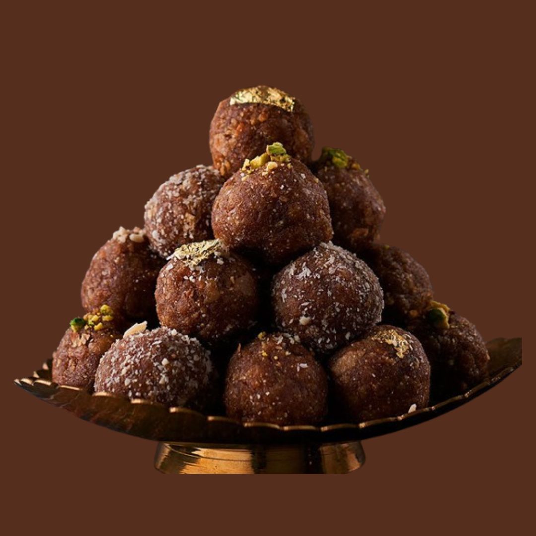 - Olive Mithai Shop Black Chocolate Laddu is a sweet Indian dessert made with a combination of black sesame seeds, jaggery (a type of unrefined cane sugar), and cocoa powder.