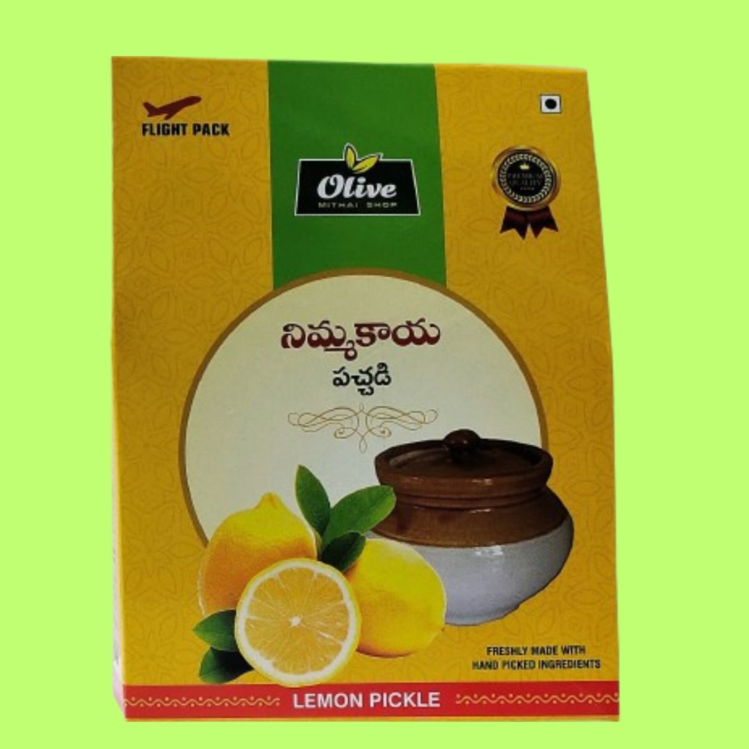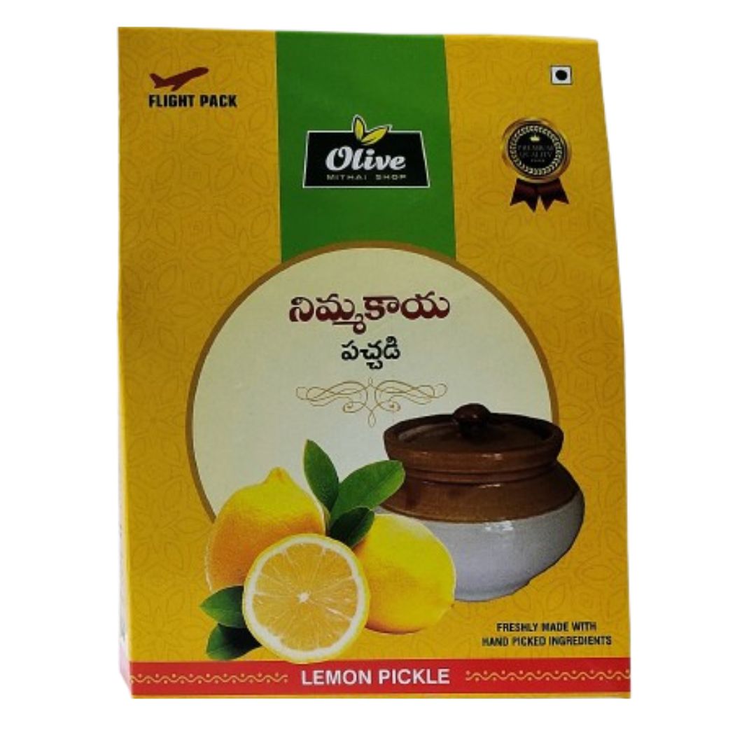 - Olive Mithai Shop Lemon Pickle is a tangy and spicy condiment made from lemons preserved in salt and spices.