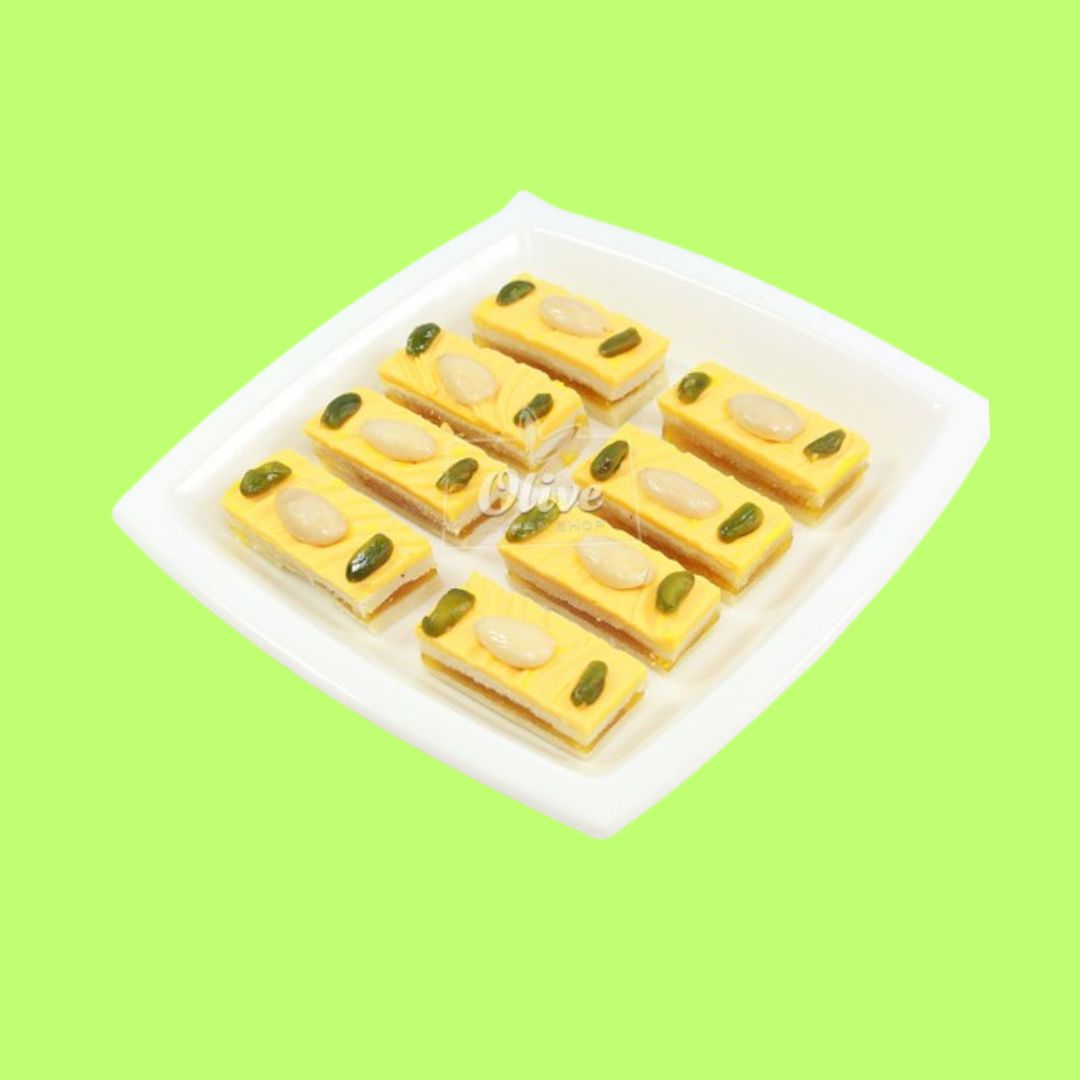 - The Mango Badam Burfi from Olive Mithai Shop is made using high-quality ingredients and traditional recipes.