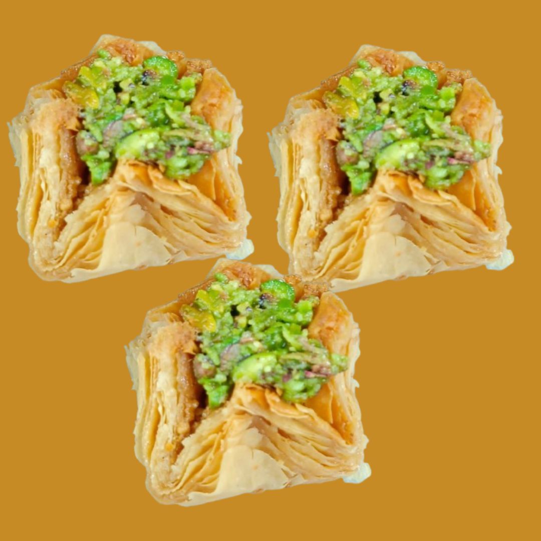 - Olive Mithai Shop's Pista Piramid Baklawa is a delightful pastry that showcases the rich flavors and textures of pista.