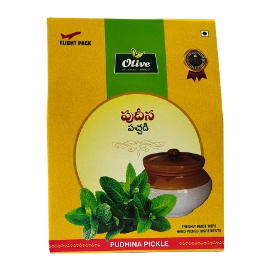 - Olive Mithai Shop Pudina (mint) pickle is a popular Indian condiment from fresh leaves, spices, and oil.