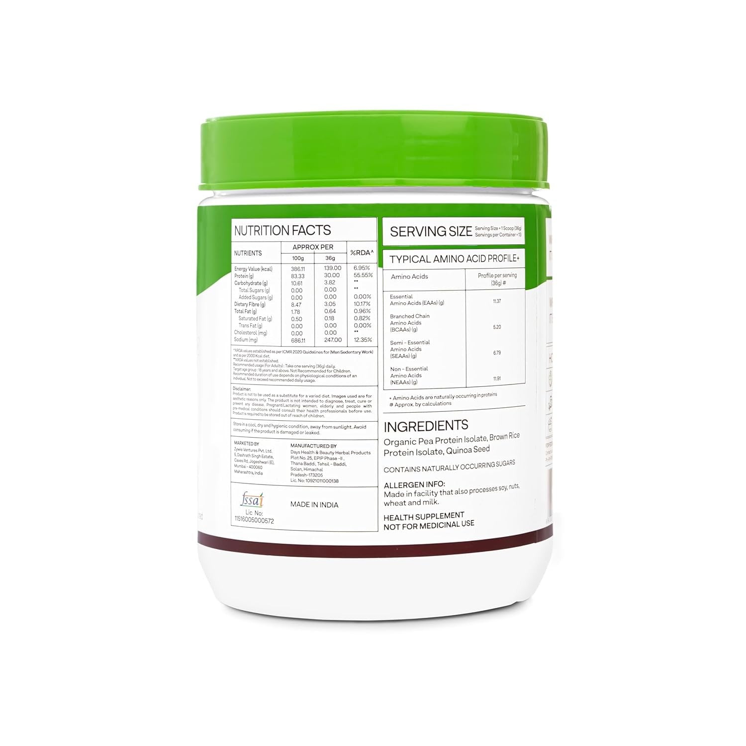 - Promotes everyday fitness by providing 30g Complete Protein of essential Aminos combining Organic Pea Protein Isolate, Organic Brown Rice Protein and Organic Quinoa.