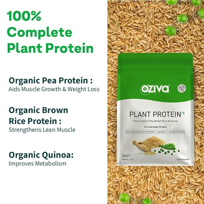 - OZiva Organic Plant Protein is a complete plant-based protein powder for holistic nutrition over a long period of time, unlike other plant protein powders in the market.