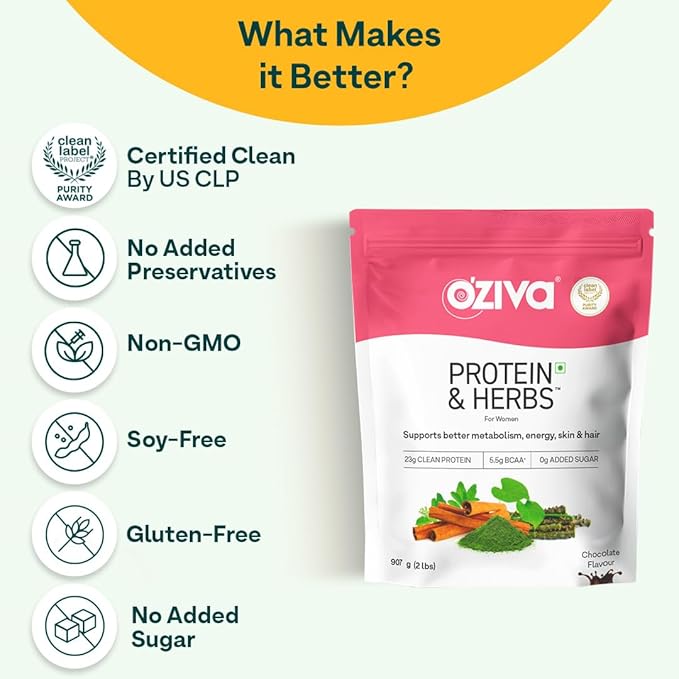 - OZiva Protein & Herbs for Women packs 23g of Certified Clean Protein with essential Multivitamins, Minerals, and Ayurvedic Herbal extracts. It is India’s best protein powder for weight control, increased metabolism, higher energy and lean muscle.