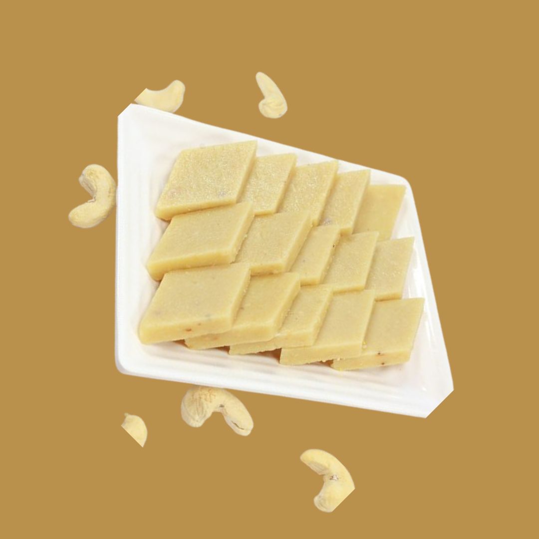 - To make Kaju Thiruvachi, finely ground cashew nut powder is mixed with sugar syrup and cooked until it forms a thick, pliable dough.