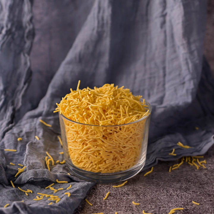 • Want to make your children eat boiled groundnuts but the very sight of something “healthy” drives them away? Enter Sannapoosa - the snack that makes your chaat and other homemade snacks look and taste better! Also known as karapoosa, omapodi and sev, this snack is popular and widely consumed across India. Its bright natural colouring, thin flaky appearance and its crispy texture are all characteristics that attract children and work magic on any vegetable-based snack.