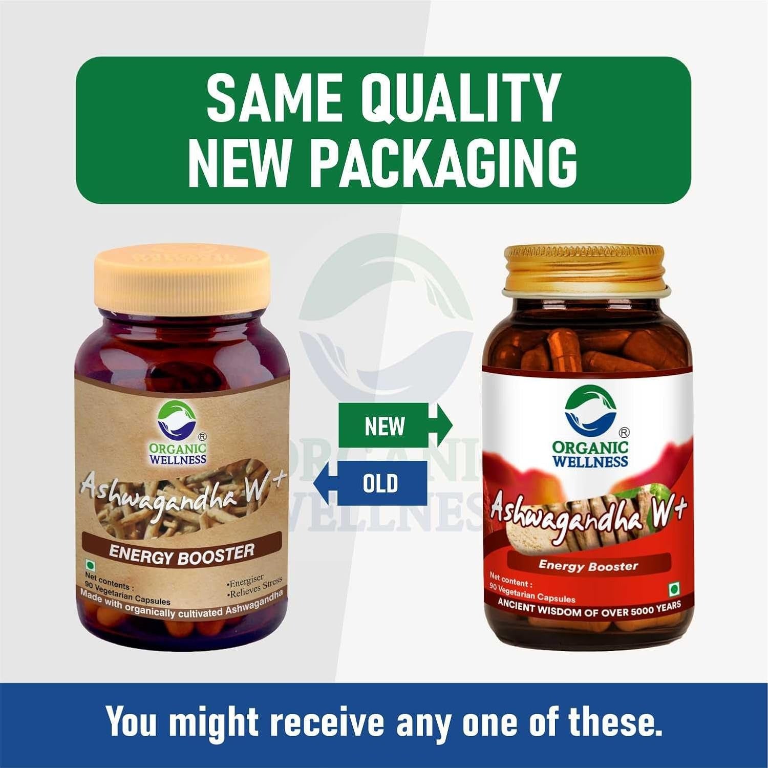 - Organic Wellness Ashwagandha W+ has organic Ashwagandha that energises, invigorates and provides relief from stress.